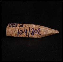 | Description / विवरण | Handmade bone point, dark brown in colour. Similar to point but it has only one pointed other end has thicker. Uneven in shape and rough surface. |