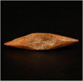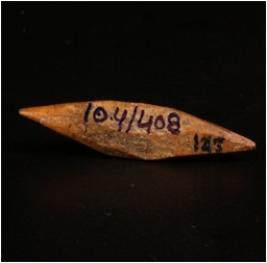 | Description / विवरण | Handmade bone point, light brown in colour. Long narrow having pointed tip on both ends. Uneven in shape. Well polished object, rough surface middle of the object is partly broken. |