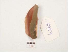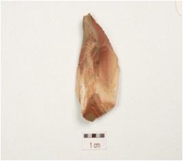 | Description / विवरण | Scraper made on chert, bulb on the ventral side, rough surface, use wear marks and wavy cutting edges. |