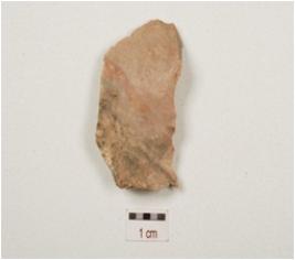 | Description / विवरण | Scraper made on chert, blade scars on the surface, rough surface one side, use wear marks along the cutting edges. |