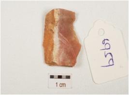 | Description / विवरण | Flake made on end struck chert, bulb on the ventral side, prepared platform on proximal end, use wear marks along one lateral side. |