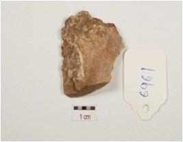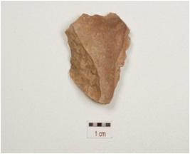 | Description / विवरण | Scraper made on chert, rough surface on dorsal side, bulb on the ventral side, irregular cutting edges. |