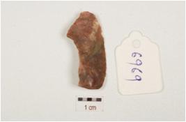 | Description / विवरण | Flake made on end struck chert, bulb on the ventral side, prepared platform on proximal end, use wear marks along the cutting edges. |