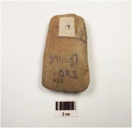 | Description / विवरण | An axe made of dolerite with polished surface, broad working edge, triangular shape, sharp edge and oval section. |