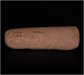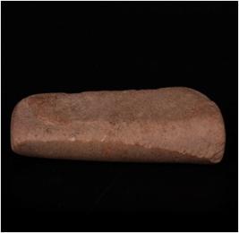 | Description / विवरण | A Muller made on stone, smooth surface on one side and rough on the other and flat surface, slightly chipped off on the surface. |