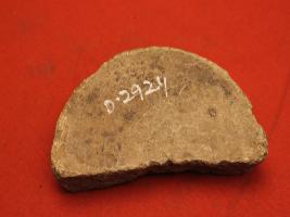 | Description / विवरण | This is fragment of disc made of sand stone, now unfortunately half is fragment. Whole surface are rough with many scratches. |