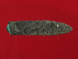 | Description / विवरण | Trench P- 31, Pit 3 sealed by layer 1 This is a blade made of copper. It has hard patina deposited on it. It is a sharp weapon. Surface is rough . |