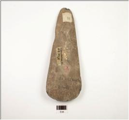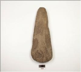 | Description / विवरण | An axe made of dolerite with broad sharp working edge, triangular in shape, thick end and oval cross section. |