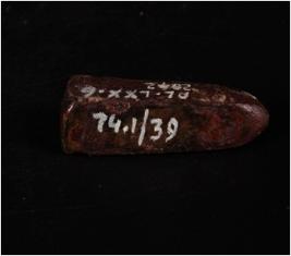 | Description / विवरण | A copper Chisel. One end is pointed and another is flat. |