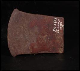 | Description / विवरण | Copper axe, flat surface and sharp edges. Hole mark on head and surface is rough. |