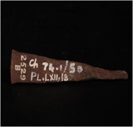| Description / विवरण | A of copper chisel. One end is pointed and another end is flat. Suface is corroded. |