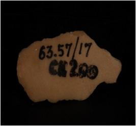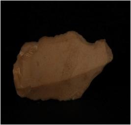 | Description / विवरण | Fragment of blade made of chert parallel sided blade with single ridge in dorsal portion, tringular section. It has prominent bulb on dorsal side. |