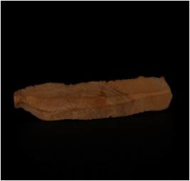 | Description / विवरण | Fragment of chert blade. Parallel sided blade withsingle ridge in dorsal portion portion, tringular section. Prominent bulb is visible. |
