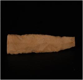 | Description / विवरण | Fragment of chert blade. Parallel sided blade with single ridge in dorsal portio, tringular section. Prominent bulb is invisible. |