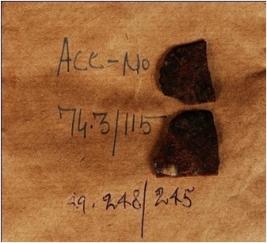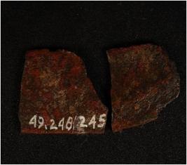 | Description / विवरण | Fragment of copper spear head, boken in two parts, surface is rough and sharp edges. |