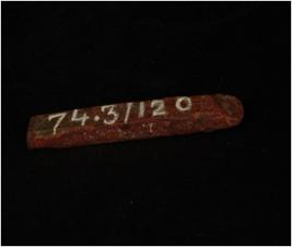 | Description / विवरण | Copper chisel, partly broken. One end is pointed and another is flat and square section. |