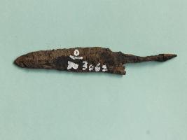 | Description / विवरण | It is tool made by iron. Colour is brownish. It is broken and both sides are flat. It is rusted and deposition of dust. |