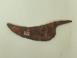 | Description / विवरण | It is a axe blade made by iron. Colour is brownish. It has sharp end and surface is rough. It is rusted and deposition of dust. |