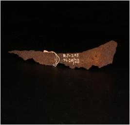 | Description / विवरण | Iron sickle, one edge is plain and other has curves, partly broken. One end is pointed, thin in character and rusted. |