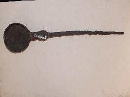 | Description / विवरण | It is a tool made by iron. Colour is brownish. It has sharp end and bottom portion is flat. It is rusted and deposition of dust. |