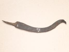 | Description / विवरण | It is scythe made by iron. Colour is brownish. It has sharp edge and sharp end. It is rusted and deposition of dust. |