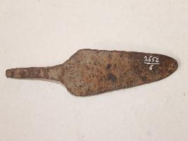 | Description / विवरण | It is an arrow head made by iron. Colour is brownish. Both sides are flat and both sharp edge. It is rusted and deposition of dust. |