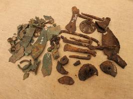 | Description / विवरण | These are several broken iron pieces. All are in different shape and size, badly rusted and common appearance is dusty brown. |