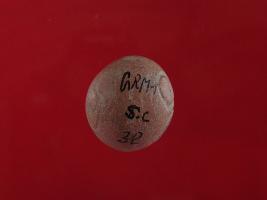 | Description / विवरण | Stratum Surface found Ball made of terracotta almost round in shape. It is broken and lost on the one side. There is circular design on its surface. Surface is smooth and appearance is of brown colour. |