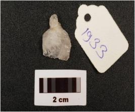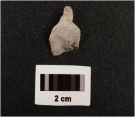 | Description / विवरण | Quartz flake with prepared platform, diffused bulb on ventral side and usewear marks along cutting edges. |