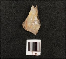 | Description / विवरण | Quartz flake with prepared platform, usewear marks along cutting edges and diffused bulb on ventral side. |