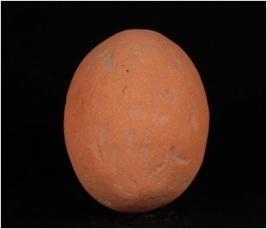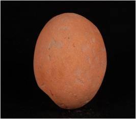 | Description / विवरण | A terracotta sling ball. Given a wash treatment in red colour and circular in shape. |