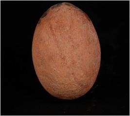| Description / विवरण | A terracotta sling ball. Given a slip treatment in red colour and circulr in shape. |