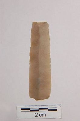 | Description / विवरण | Long rectangular shape object with prominent middle rib. Two sides are retouched and sharp. |
