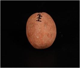 | Description / विवरण | A terracotta sling ball. Made with well lavigated clay and given a slip treatment in red colour and circular in shape. |