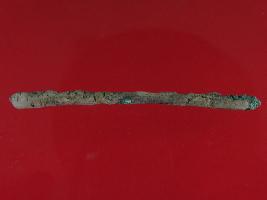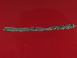 | Description / विवरण | Trench A2, Stratum Layer Pit The object is a rod, made up of copper. Surface is rough and craggy due to the deposition of heavy patina on it. |