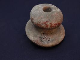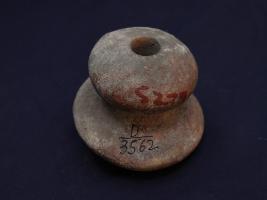 | Description / विवरण | It s a dabber made by high quality clay. Colour is red and well fired. Bottom portion is flat and a pit on it. Surface is rough and deposition of dust. |
