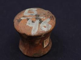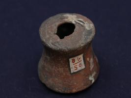 | Description / विवरण | It s a small dabber made by high quality clay. Colour is red and well fired. Border is damaged and a hole on it. Surface is rough and deposition of dust. |