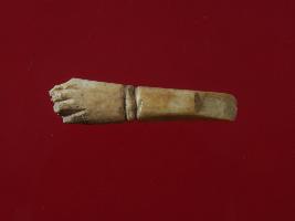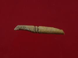 | Description / विवरण | Trench DX- 2, Depth 235 cm, Pit 6 sealed by layer 6 It is a stylus made of bone. Two incised lines are present in the middle. Surface is smooth and cream. |