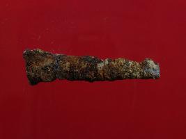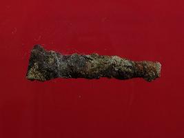 | Description / विवरण | Trench ZG- 13, Layer 4 This is a spear head made of iron. Badly corroded and rusted. |