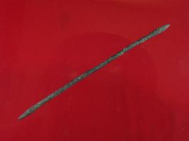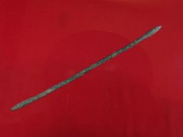 | Description / विवरण | Trench ZE- 12, Pit 1 sealed by layer 1 This is an antimony rod made of copper alloy. It is a pointed object for make up of eyes. Deposition of dust and hard patina can be seen on the surface of object. Surface is rough and colour is green-grey. |