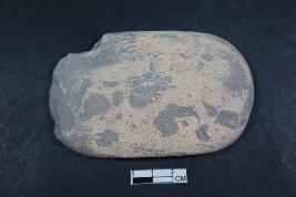 | Description / विवरण | Damaged ellipsoidal Burnisher with mica content having rough surface. |
