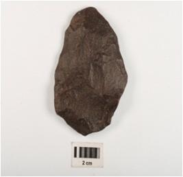 | Description / विवरण | A side scraper made on a flake with flake scars on surface. |