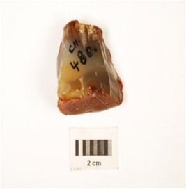 | Description / विवरण | Debitage of carnelian raw material given heat treatment and cortex on surface. |