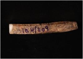 | Description / विवरण | Bone point with ridges on four sides and tapered on both ends, rectangular in section, broken ends, smooth and polished surface with uneven shape. |