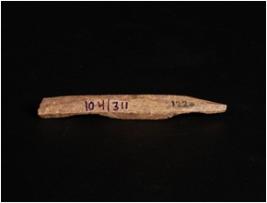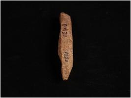 | Description / विवरण | Bone point with ridges on four sides, one side is pointed and broken from another side, rough surface, square in section. |