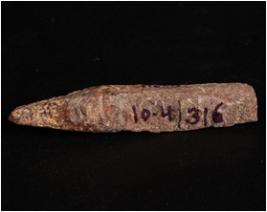 | Description / विवरण | Bone point, rectangular in section, Tip of end is pointed and broken from other side, uneven shape. |