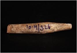 | Description / विवरण | Bone point, tip of either side broken, one end is thicker than other, smooth and polished surface and circular section. |