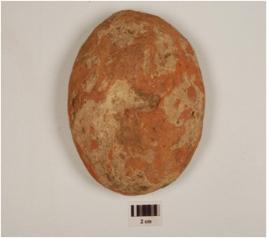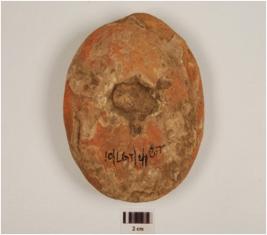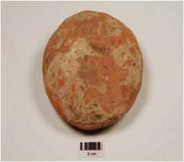 | Description / विवरण | A handmade terracotta ball, round in shape, central depression on both sides and medium fabric. |