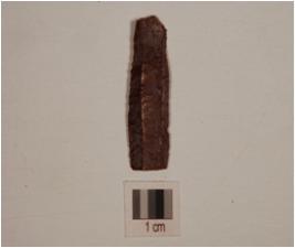 | Description / विवरण | A parallel sided blade made on chert, two ridges on dorsal surface use ware edges, prominent bulb on ventral surface. |