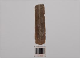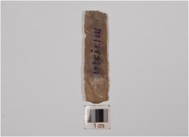| Description / विवरण | A blade made on chert, prepared platform on the proximal end, ridge on the dorsal, use wear marks on the cutting edges. |